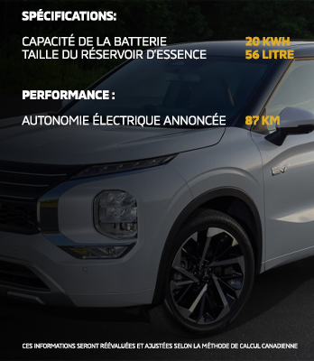 St-Jérôme Mitsubishi s’occupe de la prise en charge de la réclamation des rabais gouvernementaux et nous vous accompagnons dans le choix de votre borne de recharge et, au besoin, de vous recommander un électricien pour l’installation. Avec les rabais gouvernementaux, le prix de vente du Outlander PHEV 2025 sera équivalent au modèle à essence.
